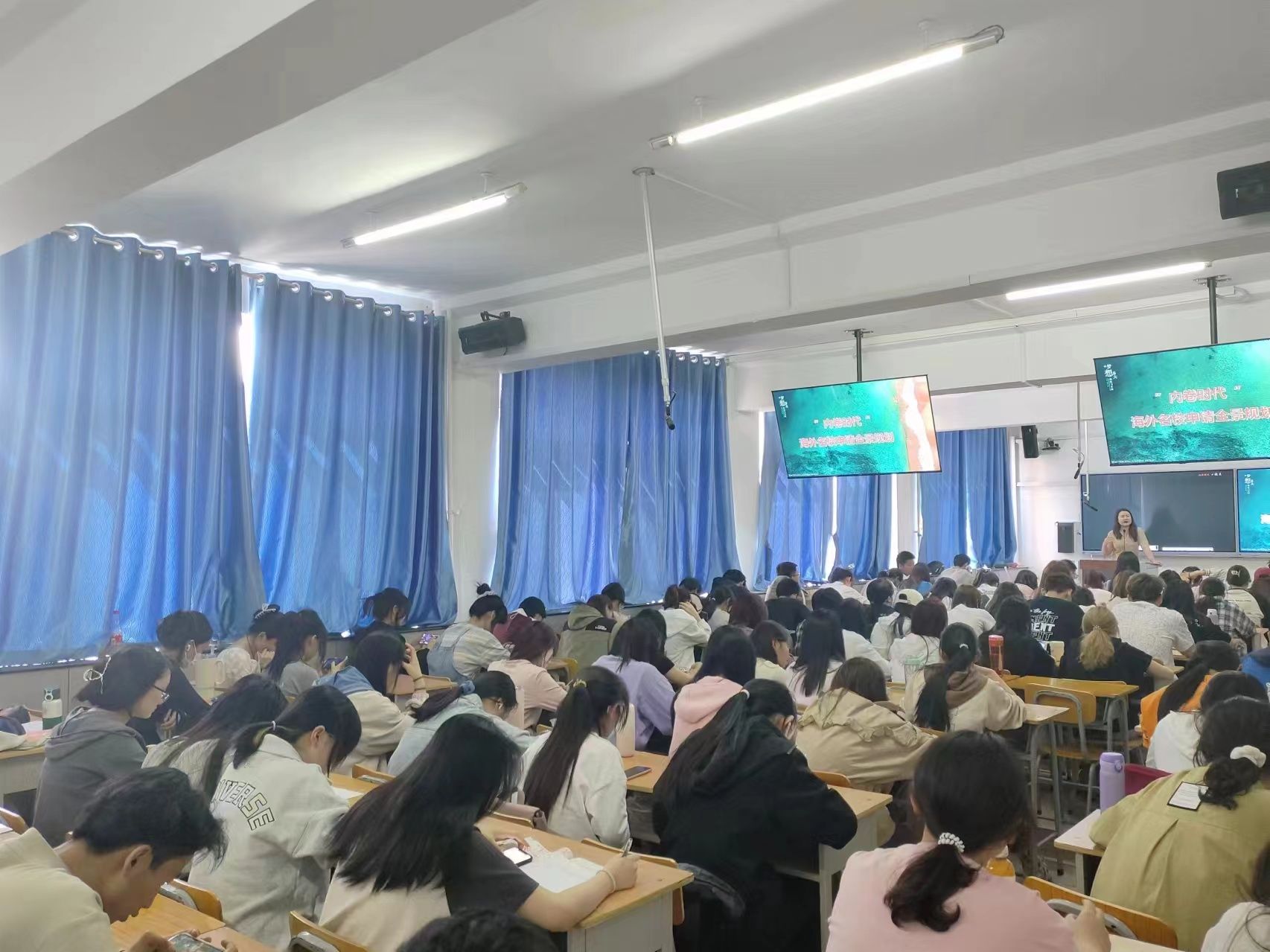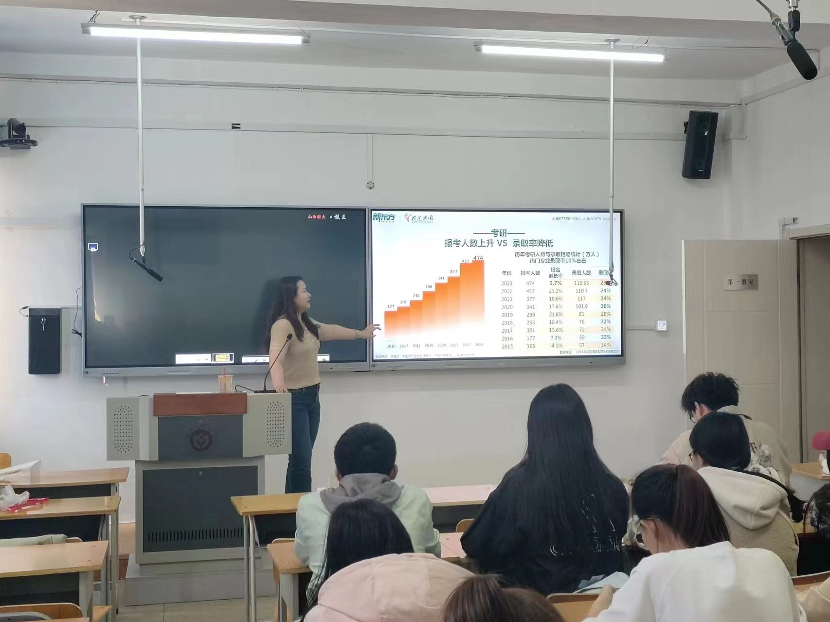 为帮助学生了解留学形势,明确留学程序,多元化准备就业路径,学院416日于迎泽校区求真楼703教室举办题为“梦想起航,规划未来——大学生留学规划指导”讲座,邀请新东方留学专家杨璐、郭玲丽、韩俊伟三位老师作为主讲嘉宾,130余名一二年级学生参加讲座。