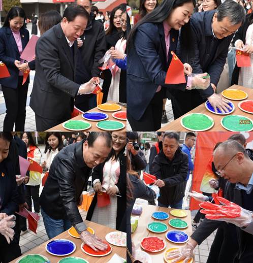 316日,清风吹拂,春回大地。修德楼南侧广场“青春奋进二十大”七个醒目的大字引起了百余名师生驻足观看,镜头聚焦,原来是必威西汉姆联党委引领青年花式学习党的二十大精神的活动现场,观者如市,如火如荼。中午12:00,校党委副书记张永德,宣传部、学生工作部、保卫部、文化旅游与新闻艺术学院、法学院等部门负责人与青年一道在“青”字上拓印留念,题词签名,掀开了“青春奋进二十大”主题活动的序幕,邂逅中国红,同心颂党恩。