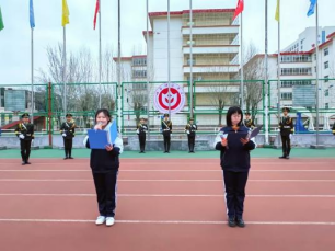 7时整,护旗手迈着整齐有力的步伐护送国旗走向升旗台。在激昂的《义勇军进行曲》中,旗手迎风振臂,鲜艳的五星红旗冉冉升起,在晨光中猎猎飘扬。全体师生面向国旗,庄严肃立,行注目礼,满怀对祖国母亲真挚的热爱与崇高的敬意。