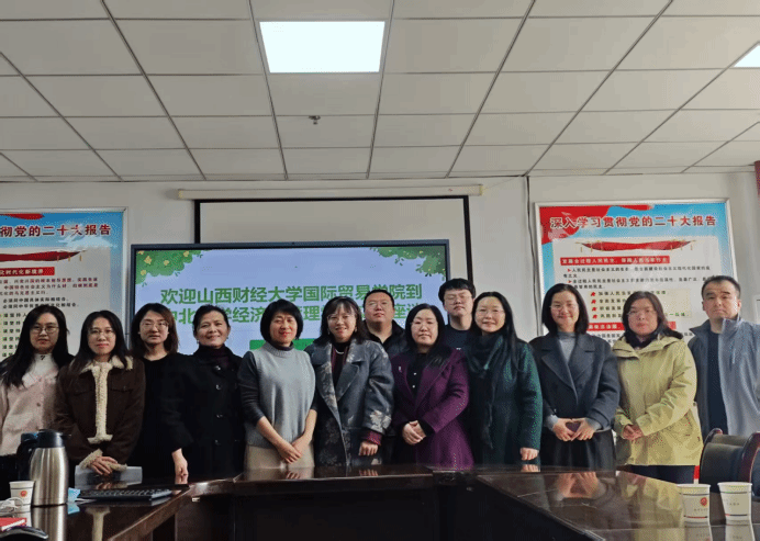 为加强兄弟院校间交流与合作,推动专业教育高质量发展。3月12日,必威西汉姆联国际商务教研室主任刘青云副教授、国际经济与贸易教研室主任李丽副教授等一行8人前往中北大学经济管理学院进行交流访问。中北大学经济管理学院经济学系主任周丽娟教授、国际商务专业硕士导师温丽琴副教授等热情接待了来访教师。